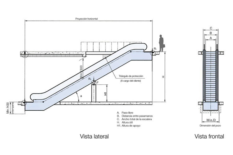 • Ancho de paso (A): 600mm / 800mm /1000mm