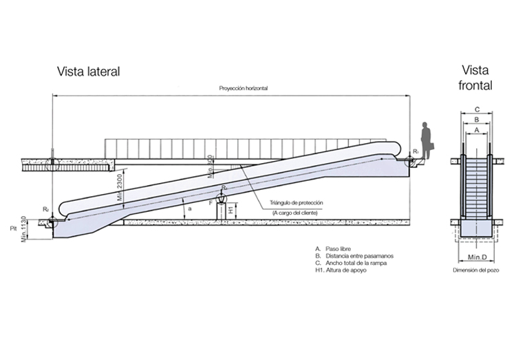 • Ancho de paso (A): 800mm / 1000mm /1200mm